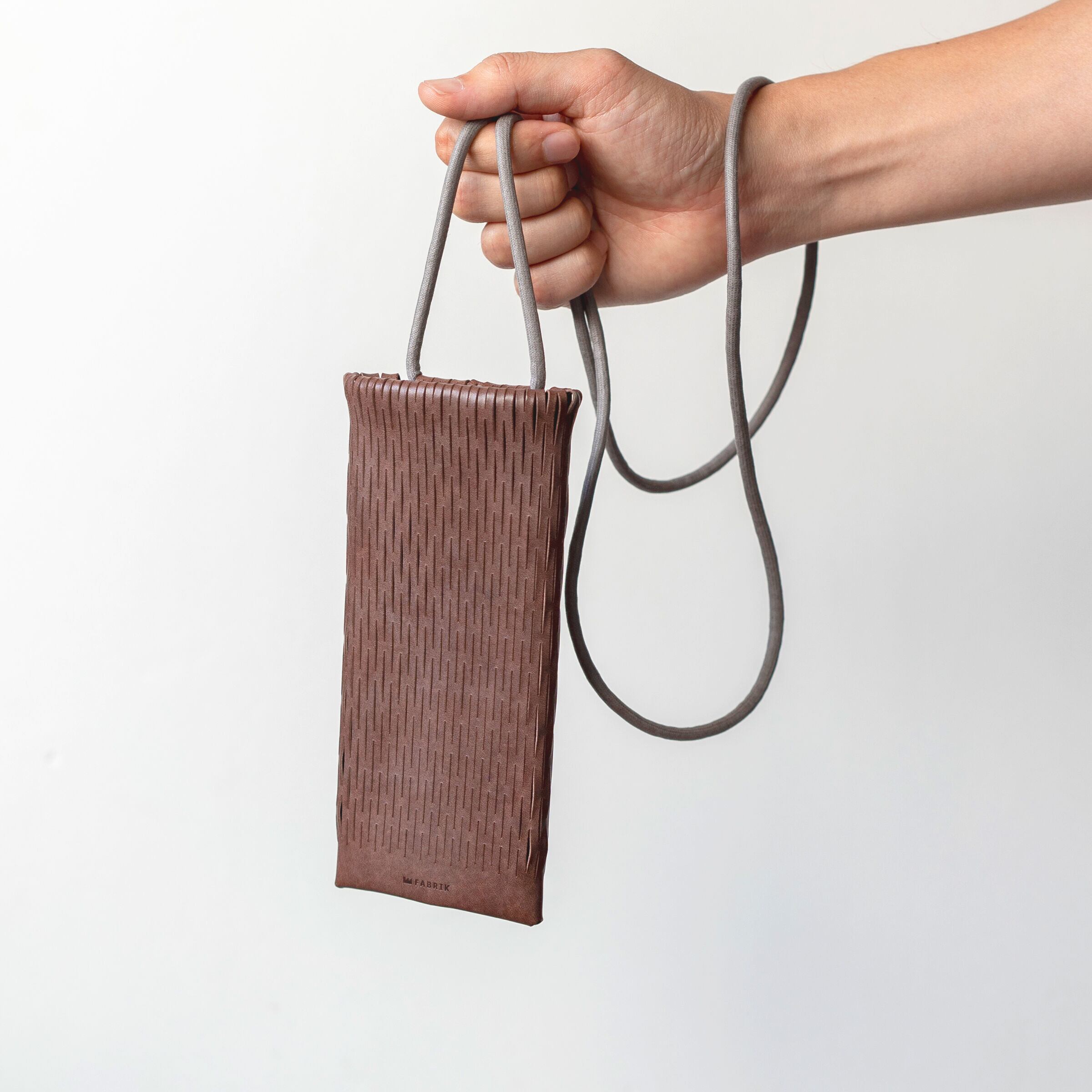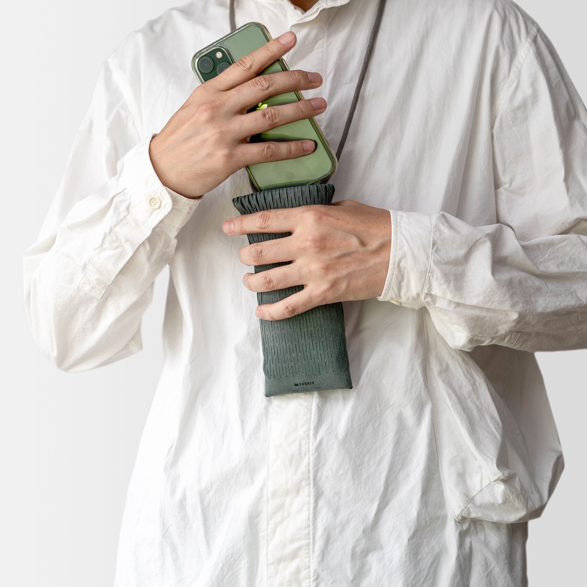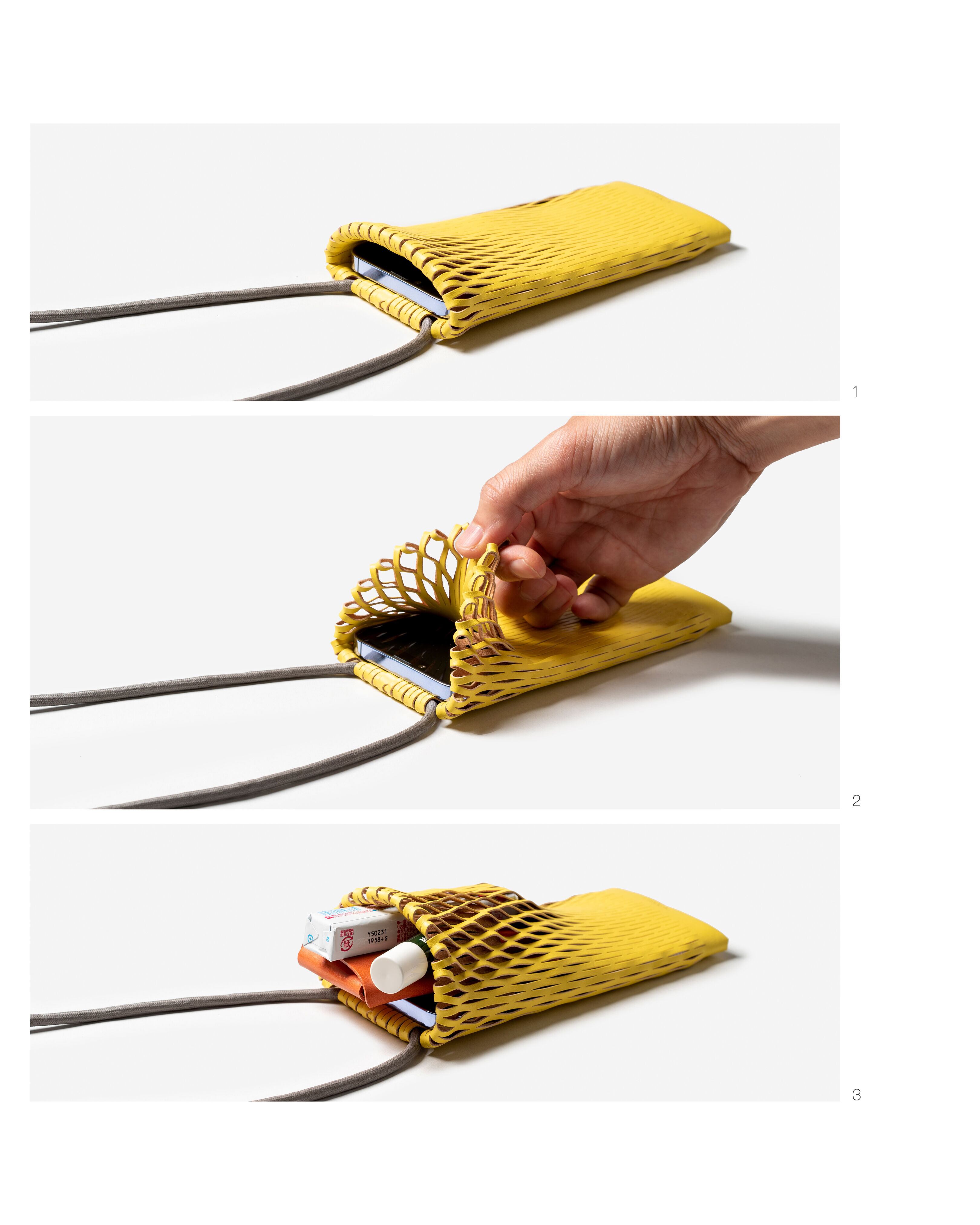 フルーツネットの構造を応用したスマートフォンポーチ。