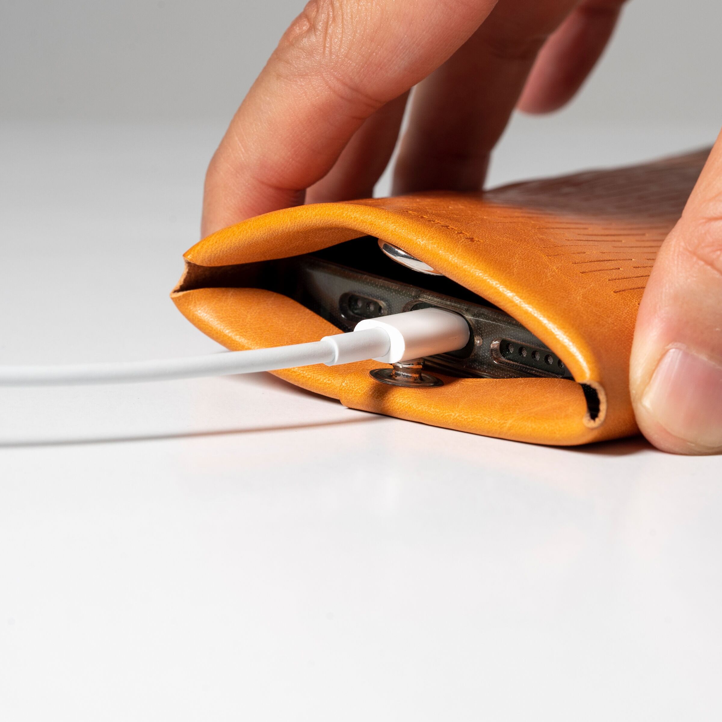 小物が深く入りこんでしまった時は底から簡単に取り出せて、スマートフォンを入れたまま卓上での充電も可能です。