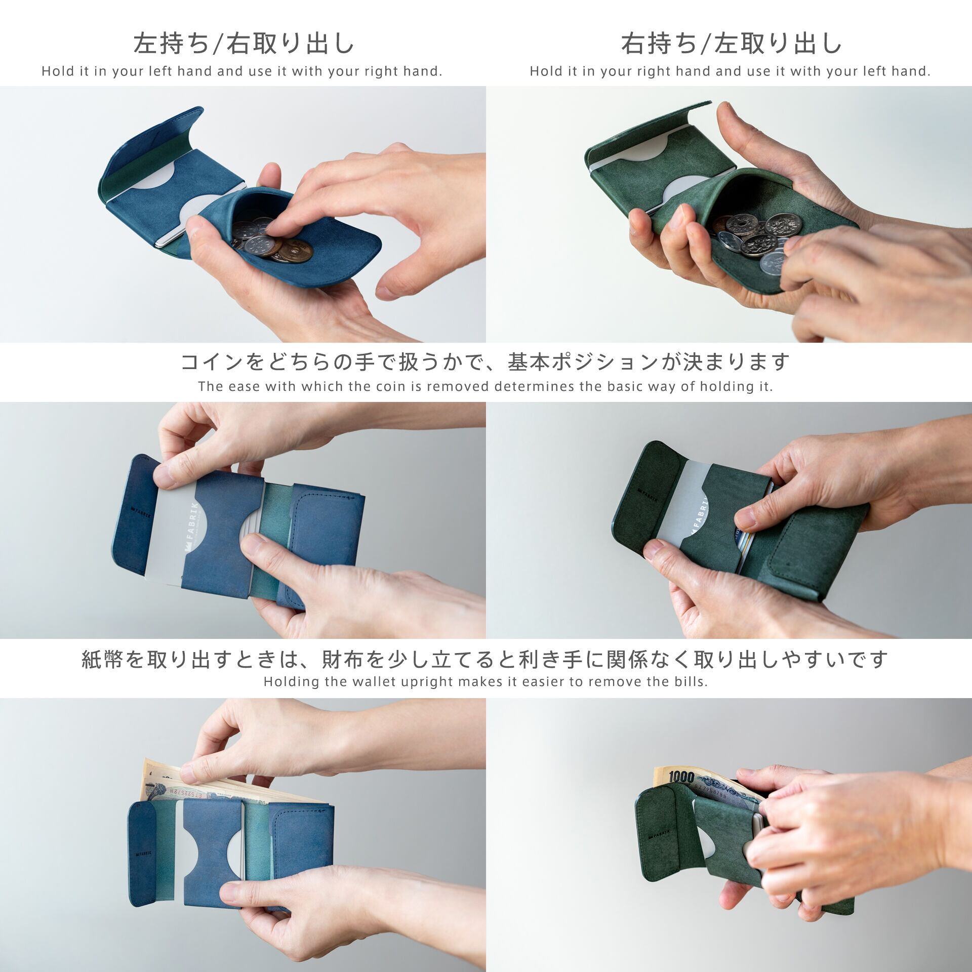手のひらと財布の真ん中を起点に、バランスよく収納をレイアウト。