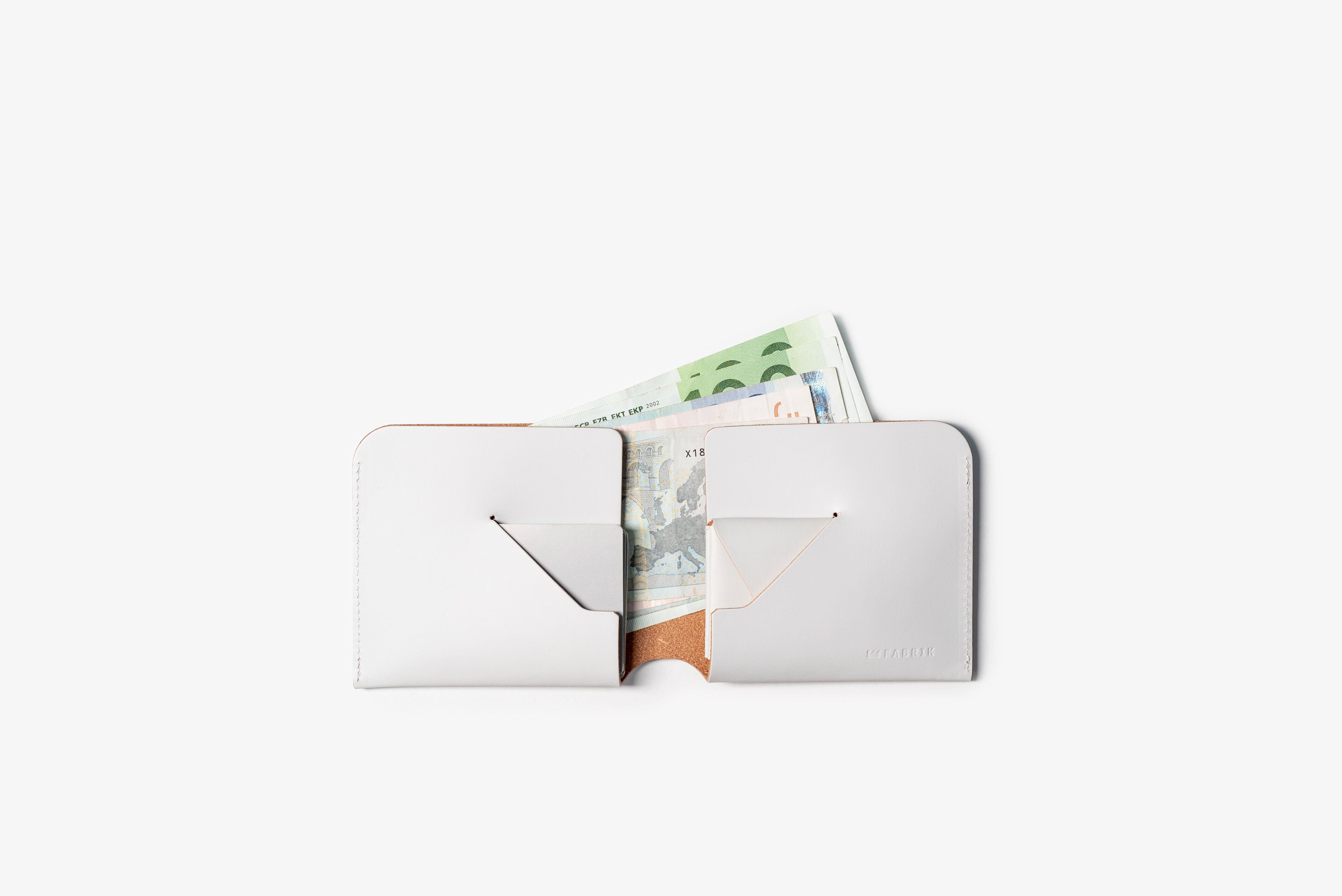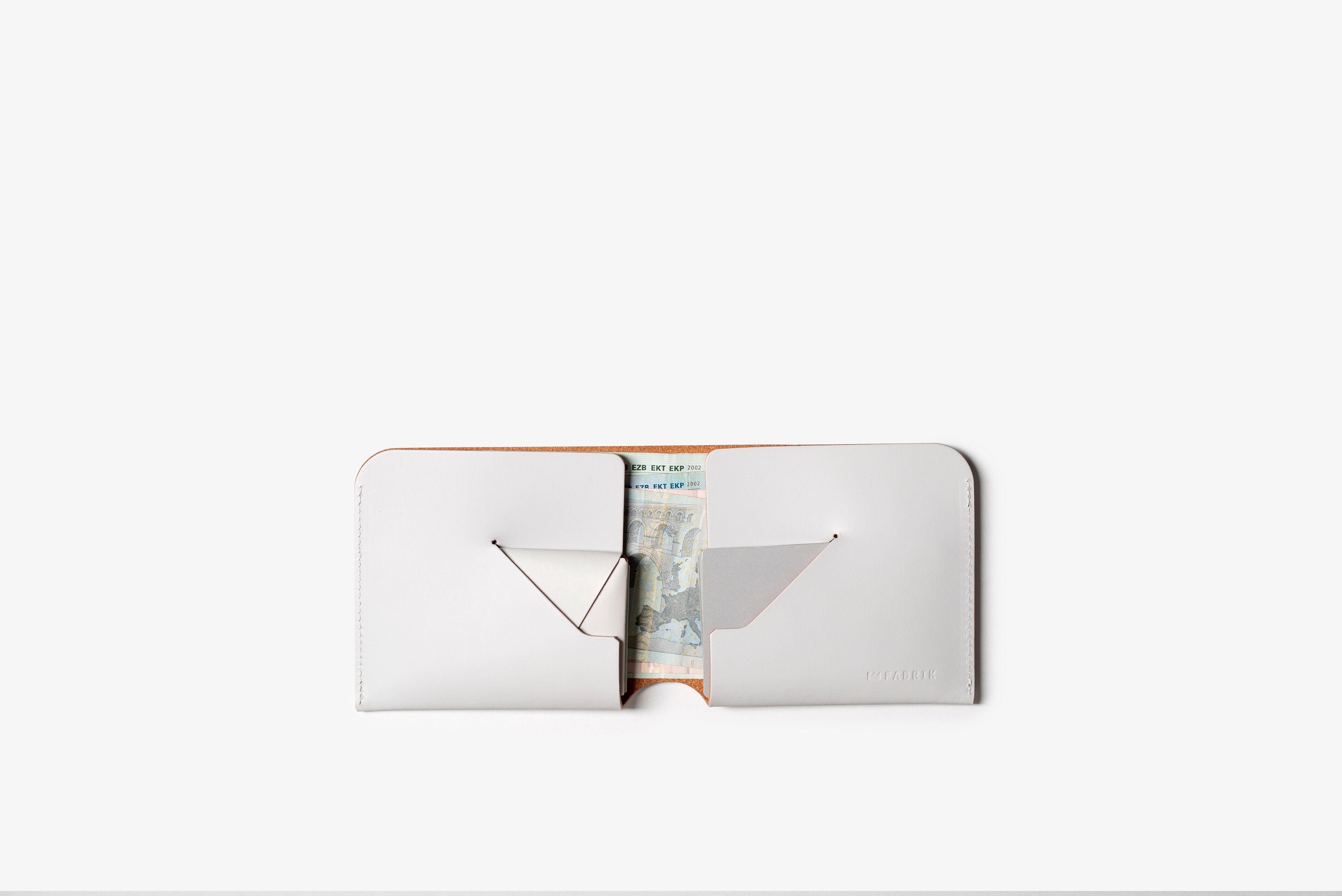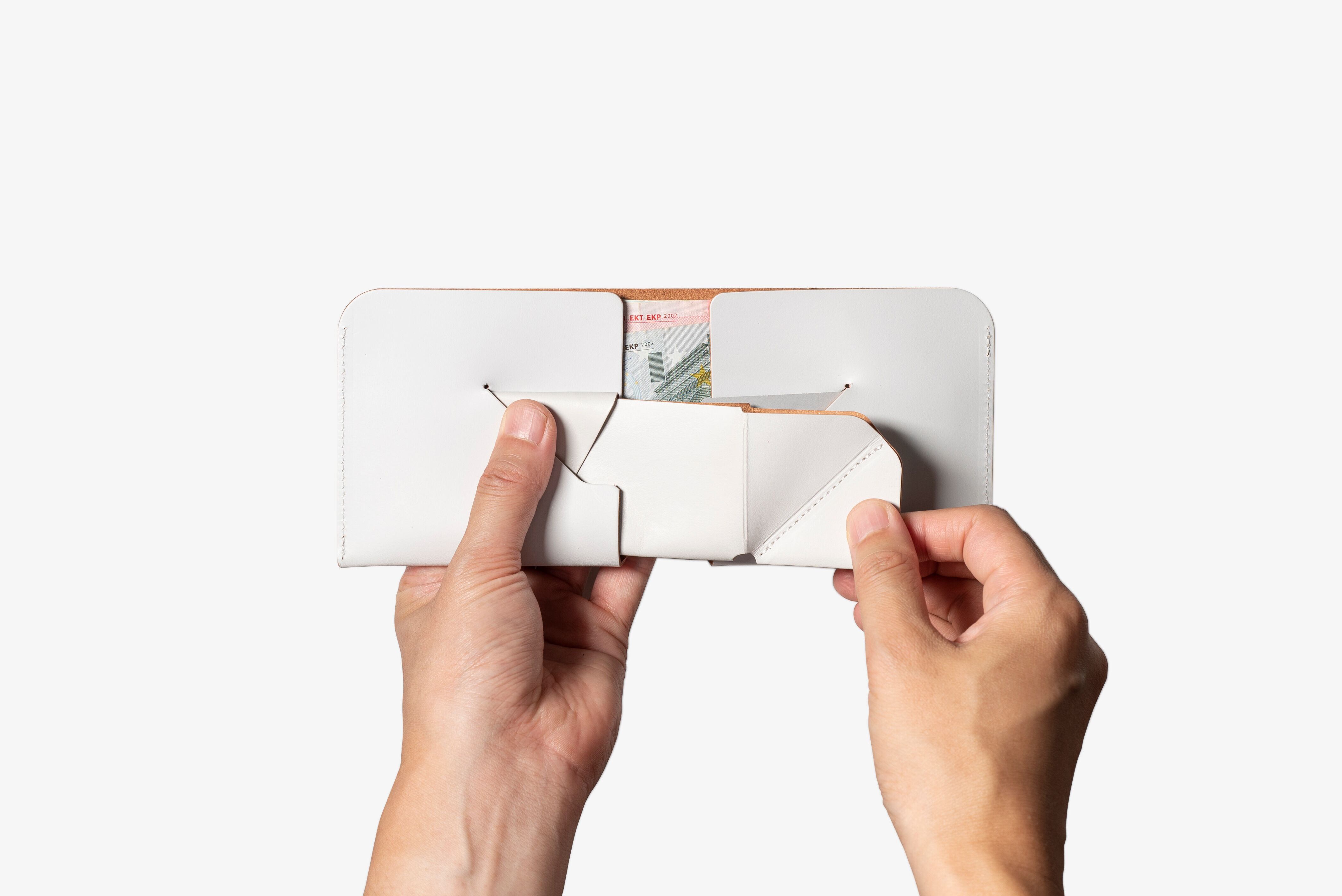 コインケースが取り外せる、ミニマルデザインの2つ折り財布。